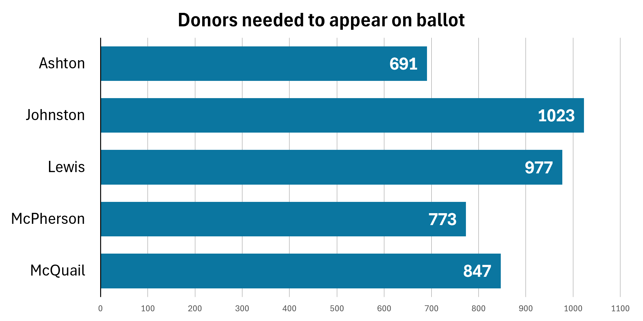 As a percentage, Johnston needed the support of 78% more donors than McPherson to gain access to the ballot.